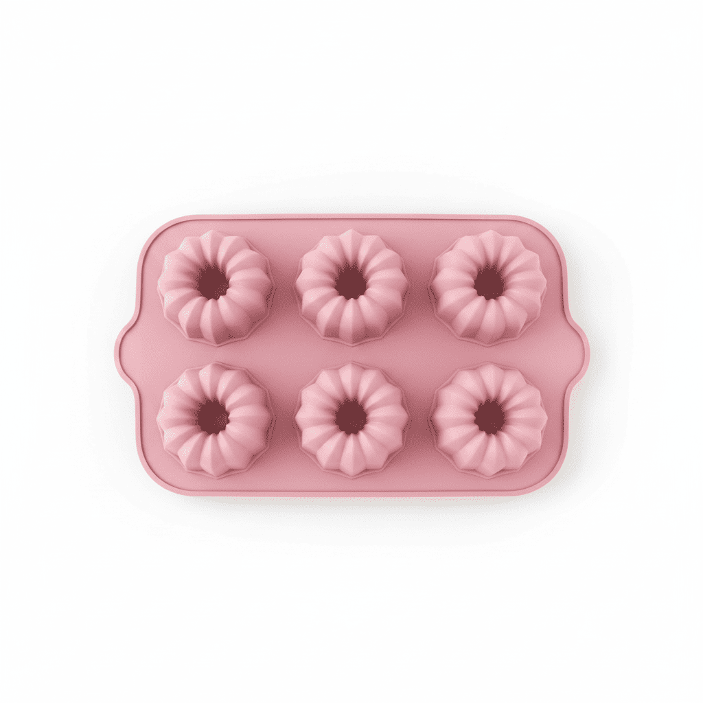 Molde pequeño para mini bundt cakes, antiadherente y fácil de limpiar. Perfecto para crear pasteles individuales con formas elegantes y detalles decorativos, ideal para regalos o eventos especiales.